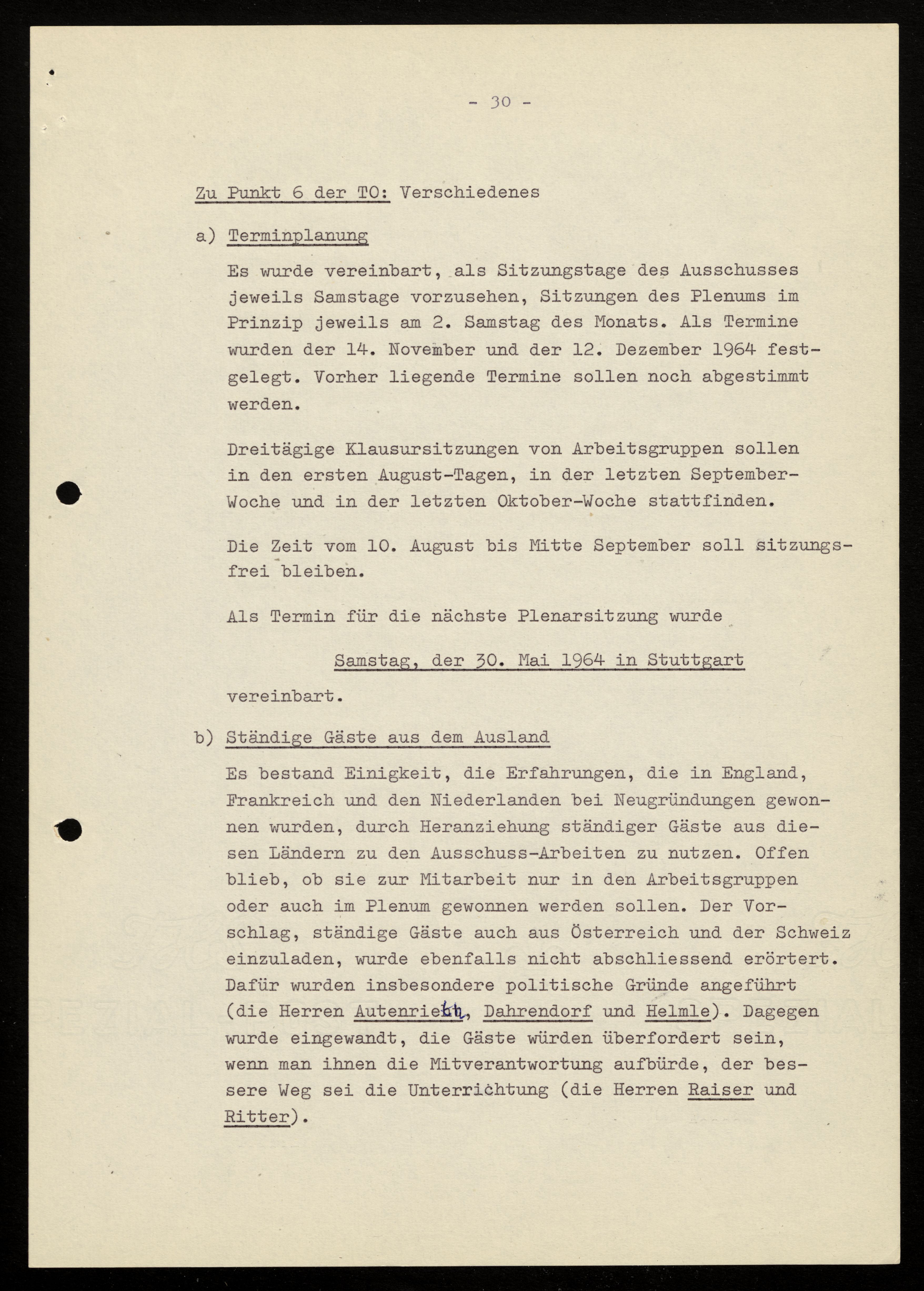 A 12 - Protokoll der sechsten Sitzung des Gründungsausschus - 1964