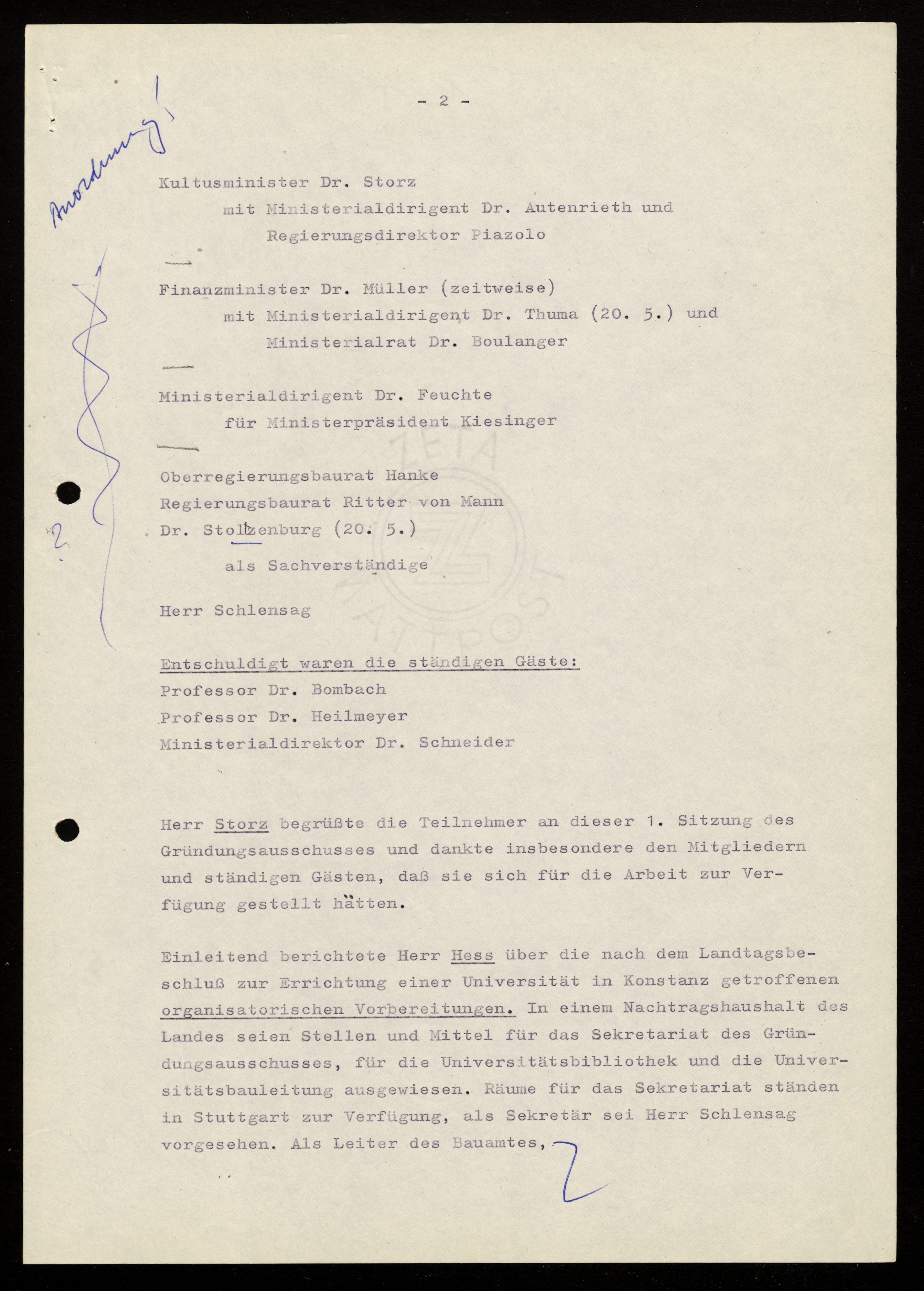 A 5, Nr. I-II - Sitzungseinladungen des Gründungsausschusses - 1963-1976